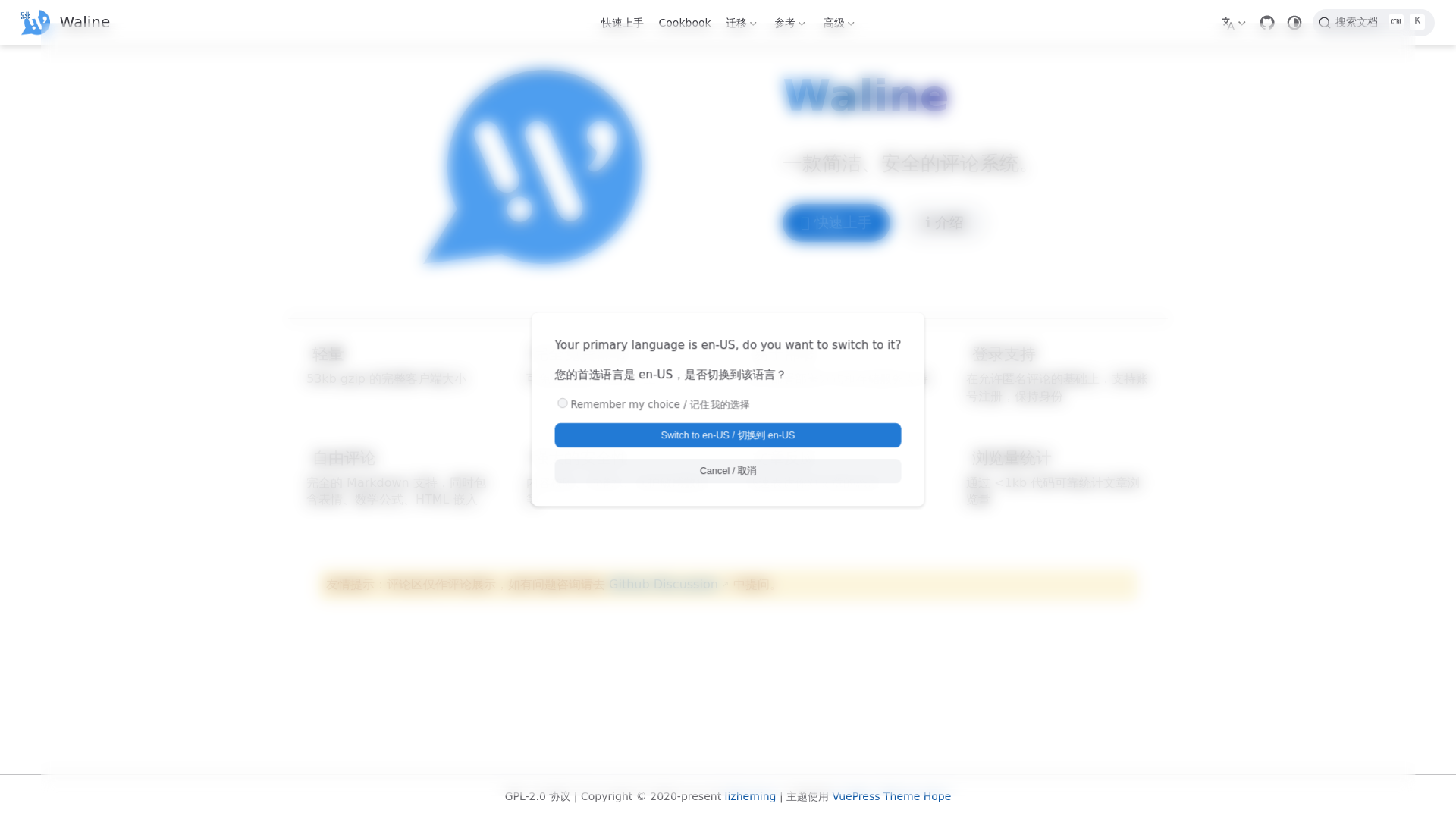 站点关键:一款简洁、安全的Waline评论系统。