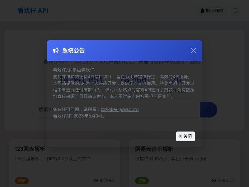 站点描述:看戏仔-API,我们致力于为用户提供稳定、快速的免费API数据接口服务。