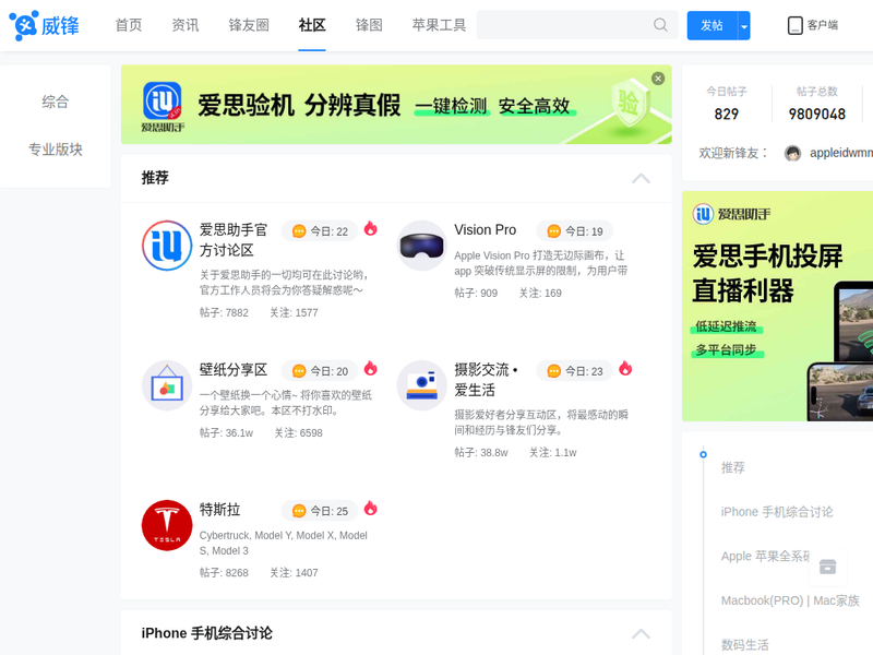 站点描述:威锋,千万果粉大本营,是中文苹果用户首选的苹果媒体及苹果社区。来威锋,看苹果资讯、讨论当下科技热点、分享玩机心得、优惠购买苹果产品、参与科技酷品试玩活动,获得更多苹果服务。威锋提供7*24小时的苹果资讯,科技原创观点、Apple软硬件、智能硬件评测等,涵盖Apple的iPhone、Mac、iPad、Apple Watch等全系列产品及周边。威锋社区犹如宝藏,沉淀了几亿个关于苹果系统(macOS、iOS)、插件软件壁纸游戏资源、玩机技巧、开箱晒货、摄影、配件硬件等与苹果科技相关的分享讨论。