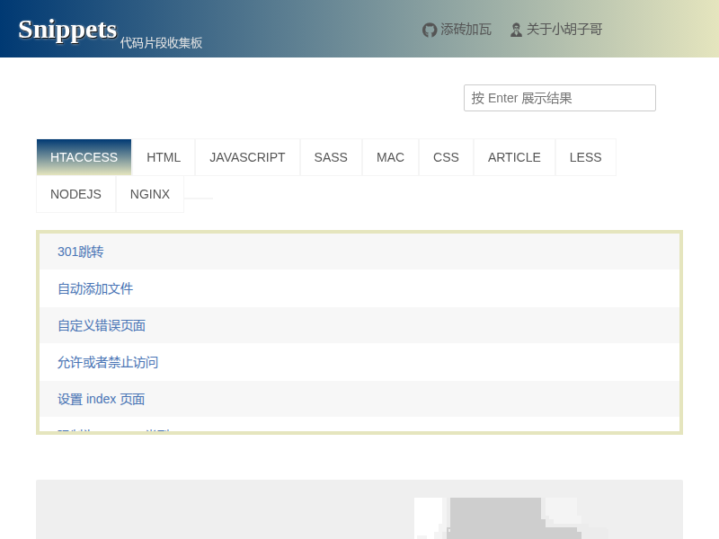 站点标题:Snippets | 小胡子哥的 snippet 分享