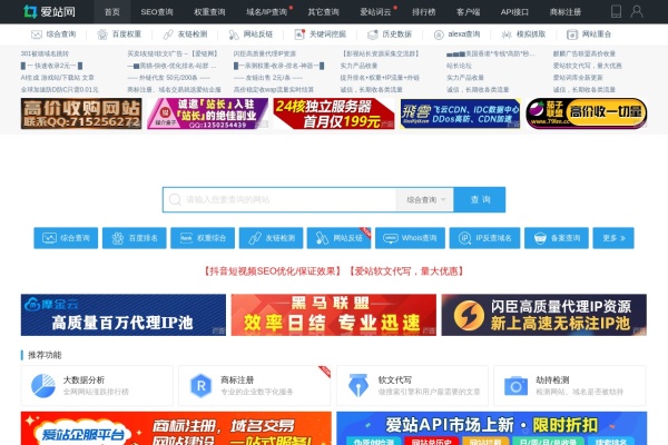 站点描述:爱站网站长工具提供网站收录查询和站长查询以及百度权重值查询等多个站长工具,免费查询各种工具,包括有关键词排名查询,百度收录查询等。
