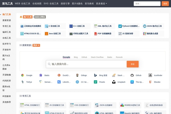 站点描述:菜鸟工具,为开发设计人员提供在线工具,网址导航,提供在线PHP、Python、 CSS、JS 调试,中文简繁体转换,进制转换等工具。致力于打造国内专业WEB开发工具,集成开发环境,WEB开发教程。..