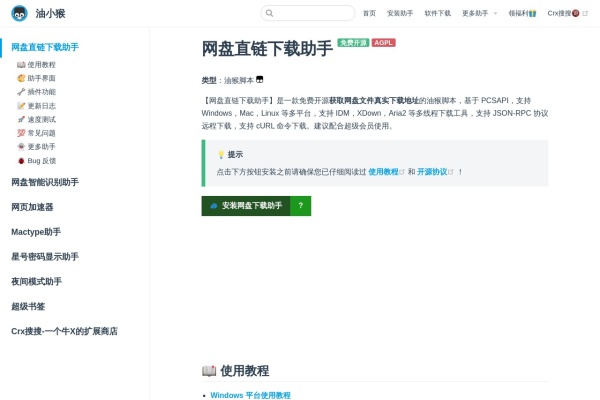 站点关键:油小猴,油猴脚本,Tampermonkey,Mactype助手,网盘智能识别助手,夜间模式,网盘直链下载助手,网页加速,网盘下载助手,网盘直链,下载助手,直链下载,网盘助手,网盘解析,油猴idm,网盘提速,网盘限速,IDM,XDown,Aria