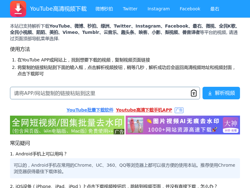 站点关键:免费在线YouTube下载器,YouTube视频下载,YouTube视频解析,油管视频下载,国外视频下载,youtube手机视频下载