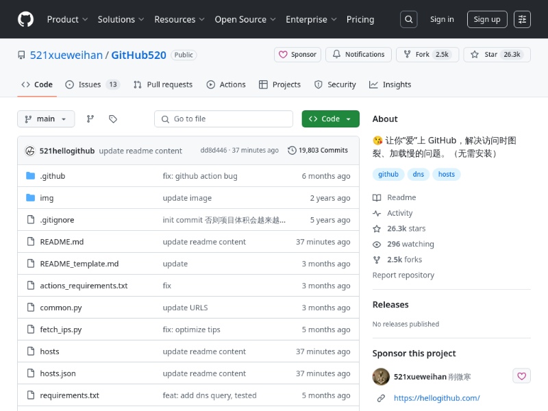 站点描述::kissing_heart: 让你“爱”上 GitHub,解决访问时图裂、加载慢的问题。(无需安装) - GitHub - 521xueweihan/GitHub520: 让你“爱”上 GitHub,解决访问时图裂、加载慢的问题。(无需安装)